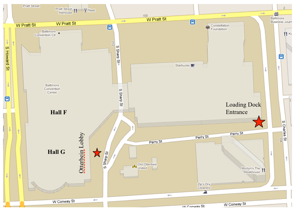 - Halls F and G will be entered using the Otterbein Lobby located on South Sharp Street.