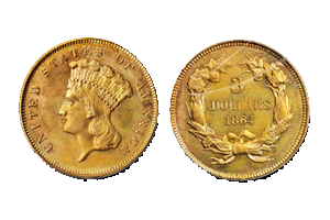 Many exciting rarities were on deck for Stack’s Bowers Galleries’ March 2013 Baltimore Auction. One of those items was an incredible Gem MS-65 (PCGS) 1864 three-dollar gold piece, a Condition Census offering. This survivor from a low mintage Civil War issue displays an impressive combination of superb technical quality and exceptional eye appeal. Previously part of the Harry W. Bass, Jr. Collection, sold by us as lot 678 in our October 1999 catalog of Part II of that impressive collection. This coin was guaranteed to draw the attention of serious specialists in this popular and challenging 19th century United States gold series.