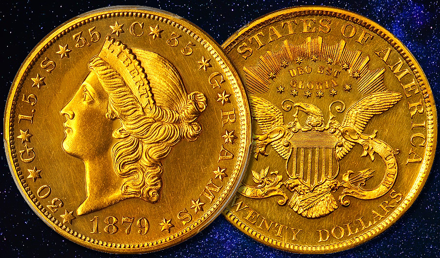 The 1879 Quintuple Stella is among the most legendary issues of United States numismatics, recognized for both its beauty and incredible rarity. It is the larger sibling to the more prolific Four-Dollar Stellas struck in 1879 and 1880, and shares with them a similar obverse legend outlining their proposed compositions in metric units. These issues were products of a global push to establish an international currency and stabilize the price of silver, which had been falling since the California Gold Rush, which began in the late 1840s. Though the Mint issued several significant patterns in the 1870s and ’80s, none were ultimately approved for circulation and the idea of an international currency was abandoned by the United States.