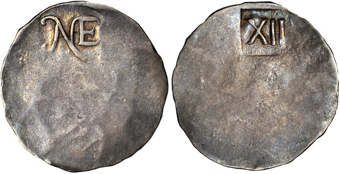 1652 NE Shilling. Noe I-A, Salmon 1-B. Rarity-7. AU-50 (PCGS).