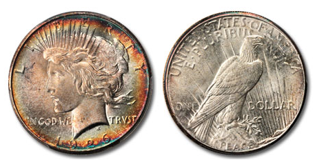 This particular jewel from the Thomas P. Warfield Collection offers a lustrous obverse with radiant, prismatic patina. In stark contrast to the glut of toned Morgan dollars, a Peace dollar exhibiting much beyond a mediocre russet or champagne hue represents an important opportunity for toning enthusiasts.