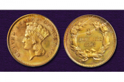Gem Mint State 1864 Three Dollar Gold Piece in 2013